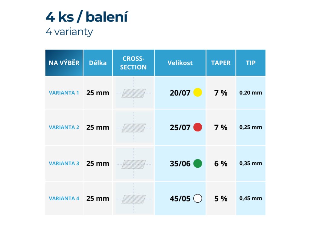 Velikosti a kužely: 20/07, 25/07, 35/06, 45/05