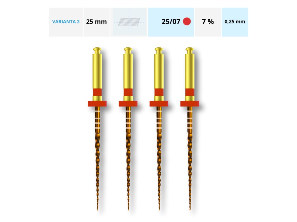 Díky reciprokačnímu pohybu (150° doprava / 30° doleva) výrazně snižuje torzní napětí a riziko separace nástroje. Navržen jako single file systém, zjednodušuje celý postup, zajišťuje hladký průběh ošetření a efektivní odstranění debris.